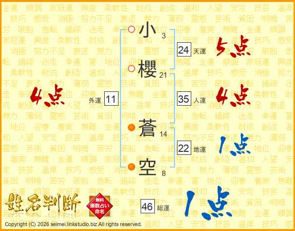 小櫻蒼空さんの総運は46画の1点!