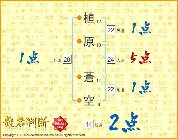 植原蒼空さんの総運は44画の2点!