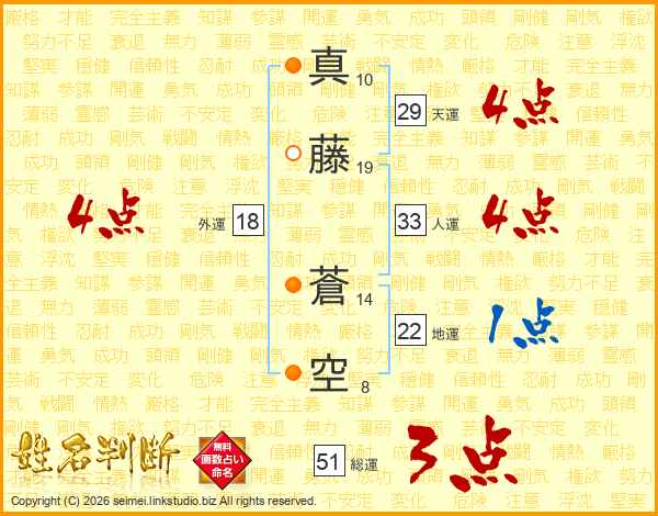 真(10画)藤(19画) 蒼(14画)空(8画)