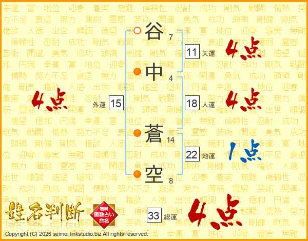 谷(7画)中(4画) 蒼(14画)空(8画)