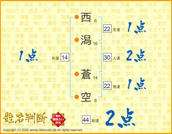 西潟蒼空さんの総運は44画の2点!