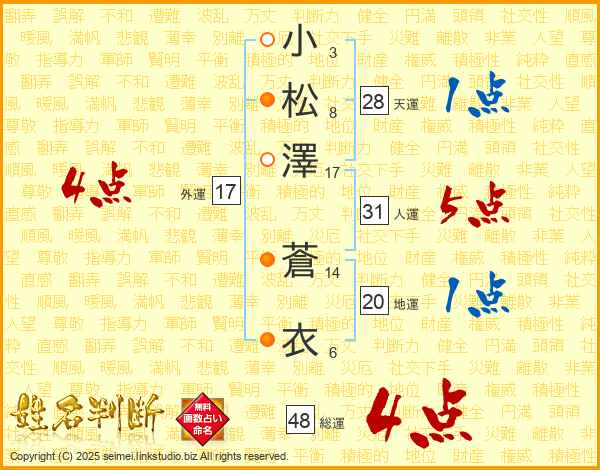 小松澤蒼衣さんの総運は48画の4点!