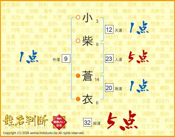 小柴蒼衣さんの総運は32画の5点!