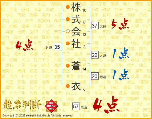 株(10画)式(6画)会(13画)社(8画) 蒼(14画)衣(6画)