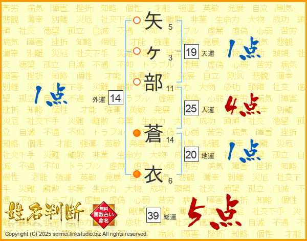 矢ヶ部蒼衣さんの総運は39画の5点!