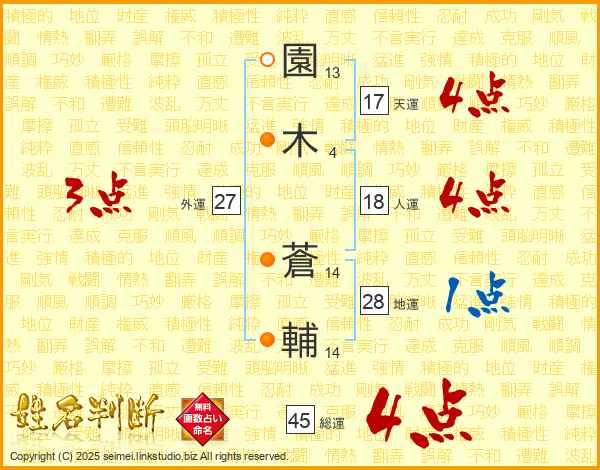 園(13画)木(4画) 蒼(14画)輔(14画)