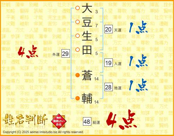 大(3画)豆(7画)生(5画)田(5画) 蒼(14画)輔(14画)