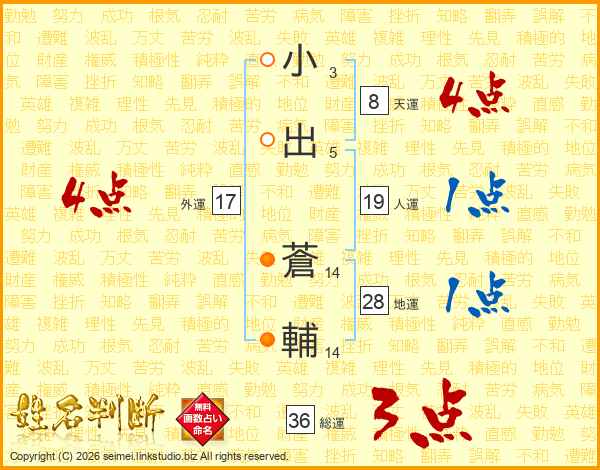 小出蒼輔さんの総運は36画の3点!