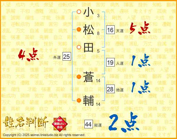 小(3画)松(8画)田(5画) 蒼(14画)輔(14画)
