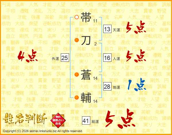 帯刀蒼輔さんの総運は41画の5点!