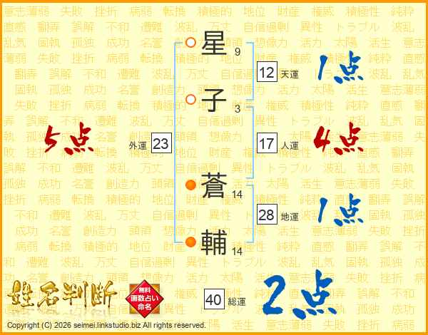 星(9画)子(3画) 蒼(14画)輔(14画)