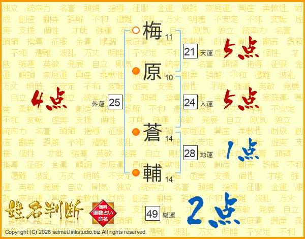 梅(11画)原(10画) 蒼(14画)輔(14画)