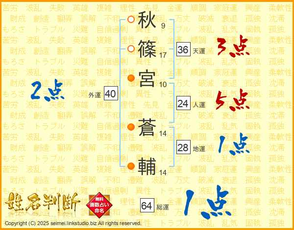 秋(9画)篠(17画)宮(10画) 蒼(14画)輔(14画)