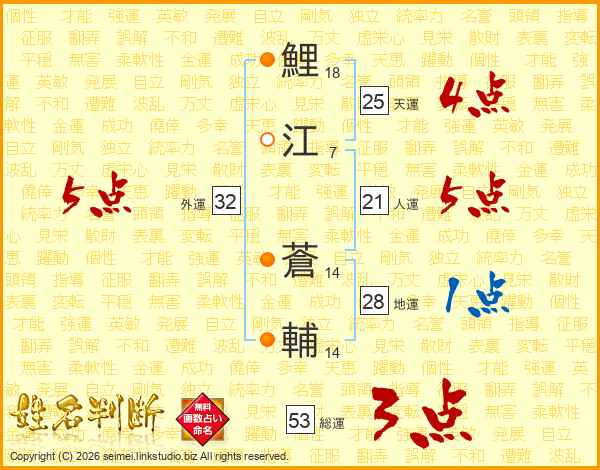 鯉江蒼輔さんの天運は25画の4点!