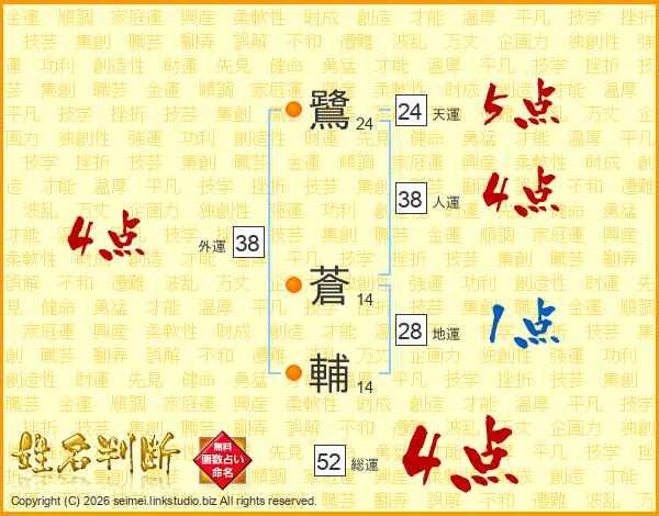 鷺蒼輔さんの総運は52画の4点!