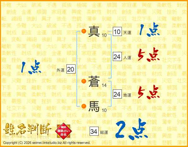 真蒼馬さんの総運は34画の2点!