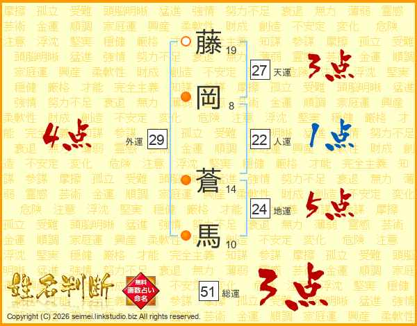 藤岡蒼馬さんの総運は51画の3点!