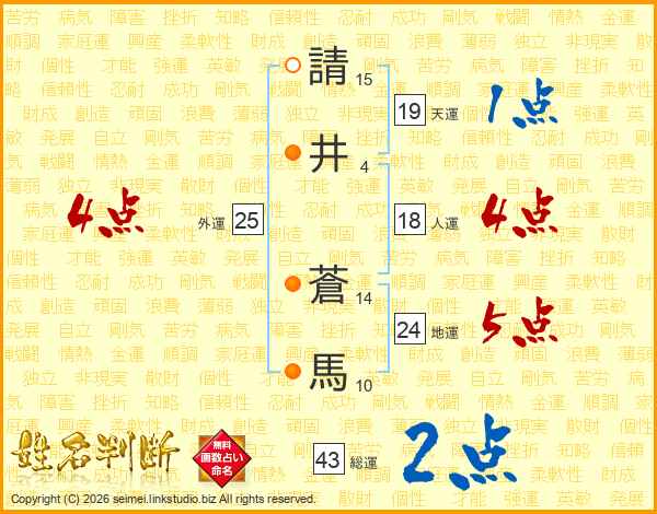 請(15画)井(4画) 蒼(14画)馬(10画)