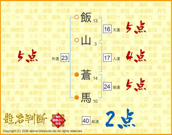 飯山蒼馬さんの総運は40画の2点!