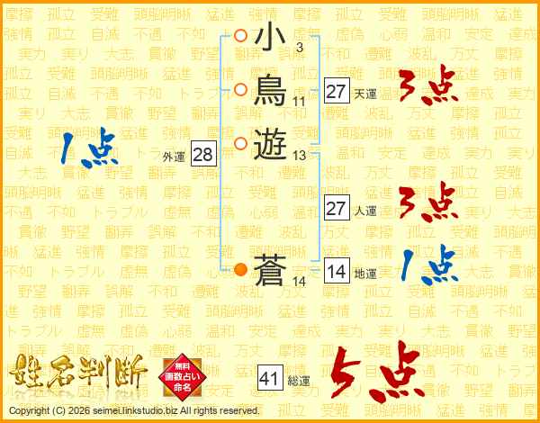 小鳥遊蒼さんの総運は41画の5点!