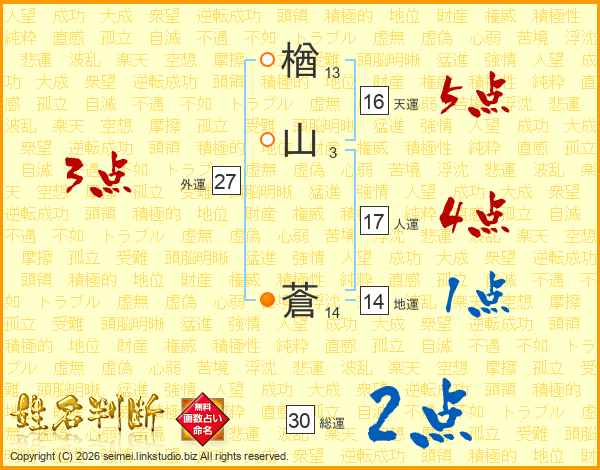 楢山蒼さんの総運は30画の2点!
