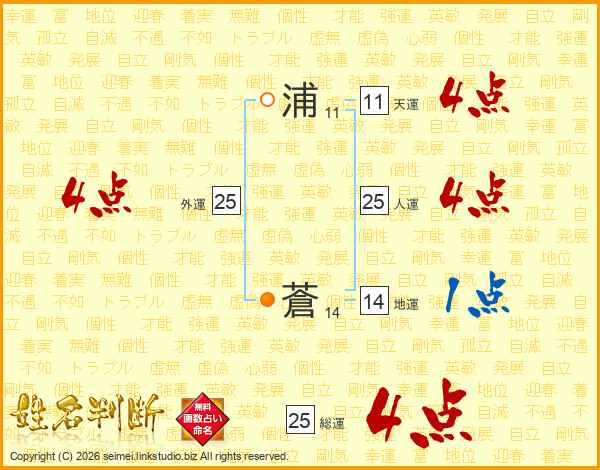浦蒼さんの総運は25画の4点!