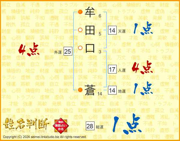 牟(6画)田(5画)口(3画) 蒼(14画)