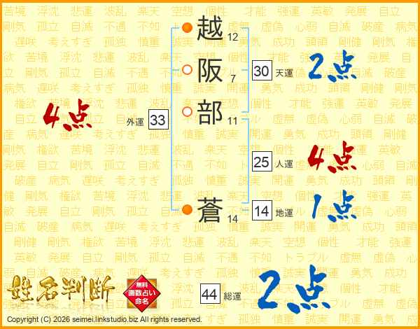 越(12画)阪(7画)部(11画) 蒼(14画)