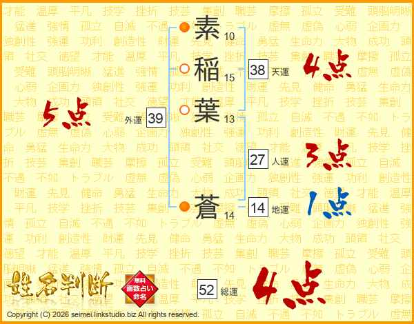 素稲葉蒼さんの外運は39画の5点!