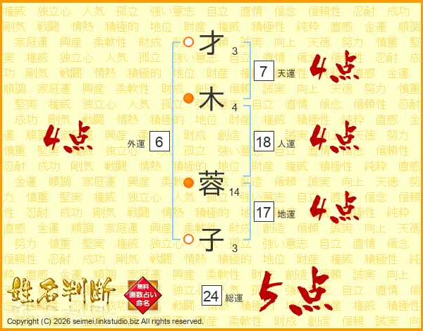 才木蓉子さんの天運は7画の4点!