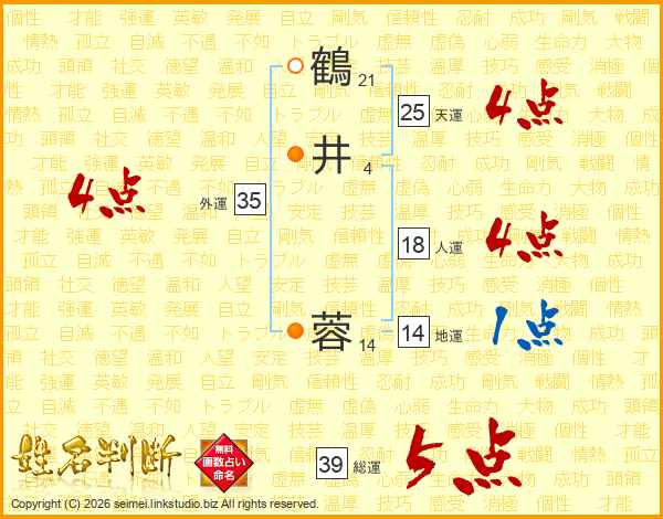 鶴井蓉さんの総運は39画の5点!