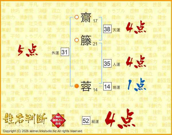 齋籐蓉さんの総運は52画の4点!
