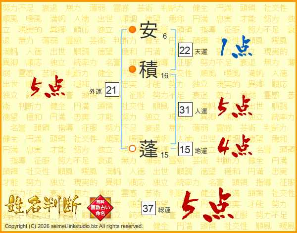 安積蓬さんの総運は37画の5点!