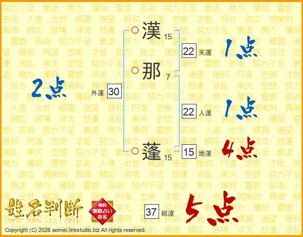 漢那蓬さんの総運は37画の5点!