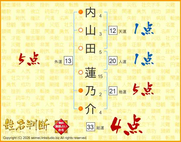 内山田蓮乃介さんの総運は33画の4点!