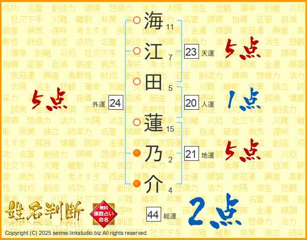 海(11画)江(7画)田(5画) 蓮(15画)乃(2画)介(4画)