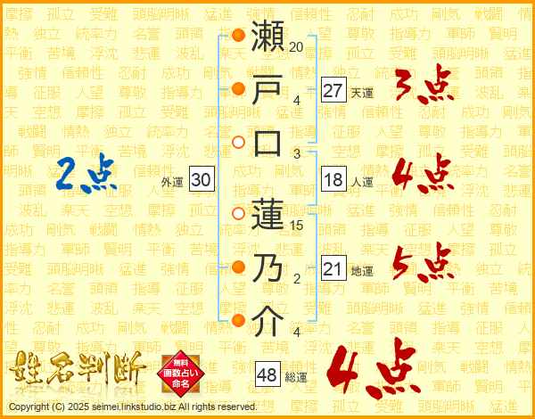 瀬戸口蓮乃介さんの総運は48画の4点!