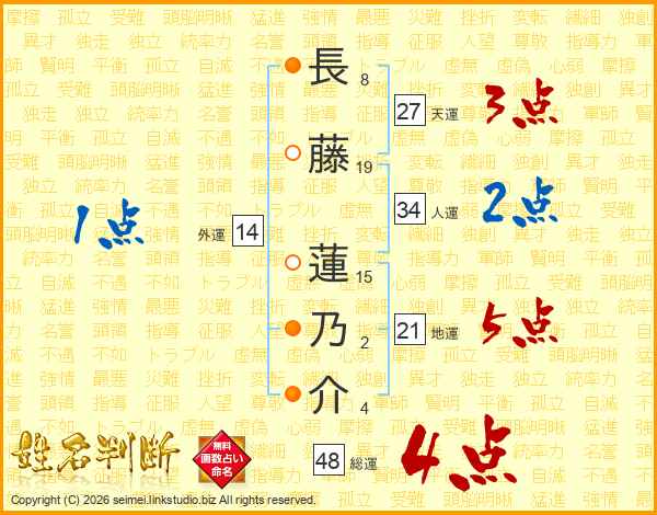 長藤蓮乃介さんの総運は48画の4点!