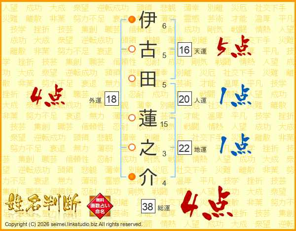 伊古田蓮之介さんの総運は38画の4点!
