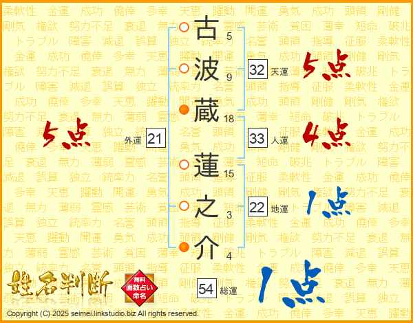 古波蔵蓮之介さんの総運は54画の1点!
