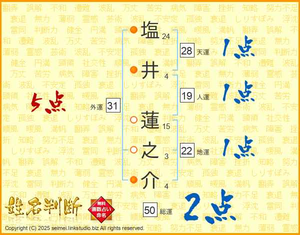 塩(24画)井(4画) 蓮(15画)之(3画)介(4画)