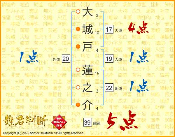 大城戸蓮之介さんの総運は39画の5点!