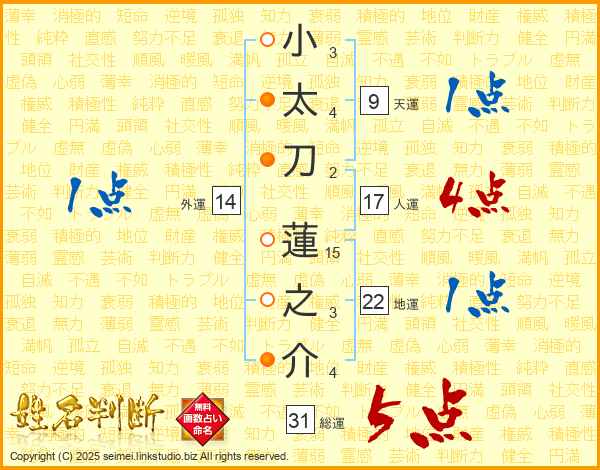 小太刀蓮之介さんの総運は31画の5点!