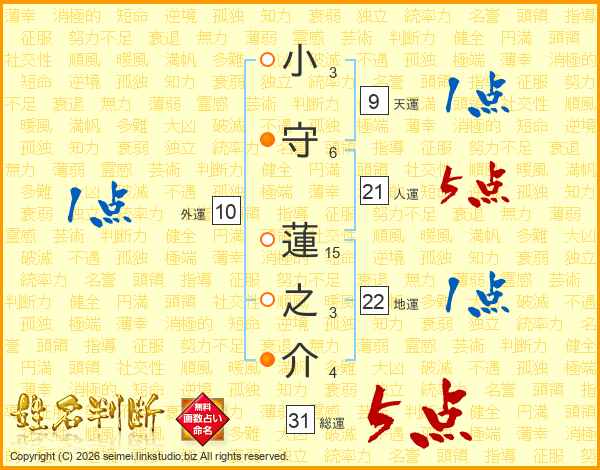 小(3画)守(6画) 蓮(15画)之(3画)介(4画)