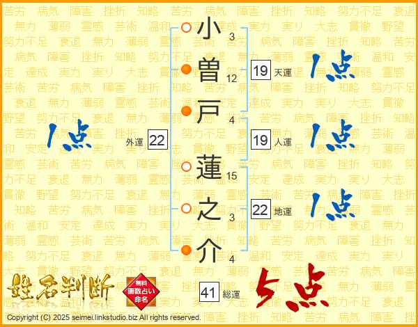 小(3画)曽(12画)戸(4画) 蓮(15画)之(3画)介(4画)