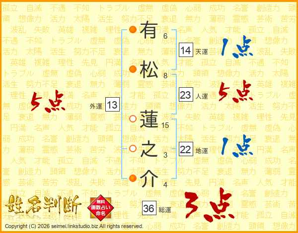 有松蓮之介さんの人運は23画の5点!