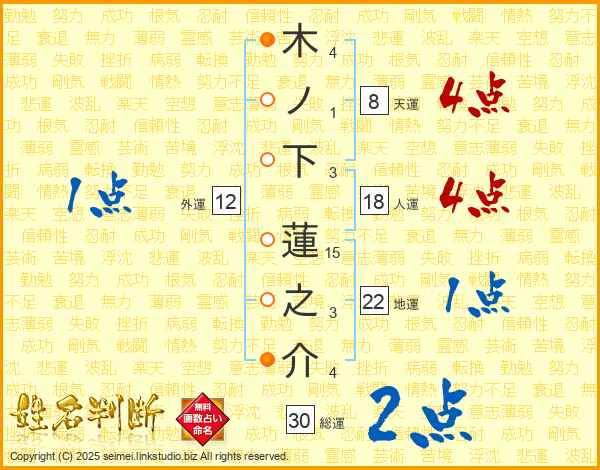木ノ下蓮之介さんの総運は30画の2点!