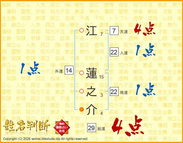 江蓮之介さんの総運は29画の4点!