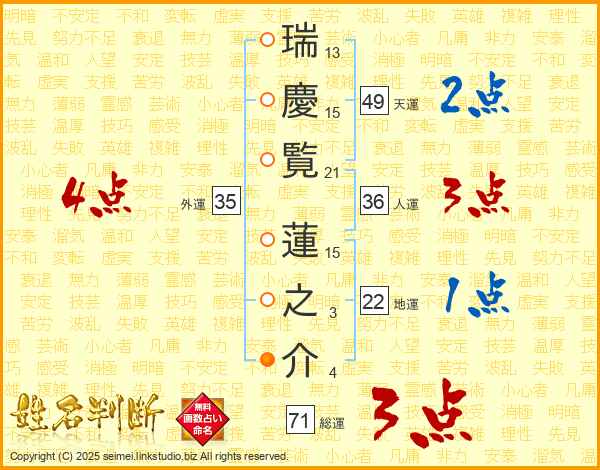 瑞慶覧蓮之介さんの総運は71画の3点!