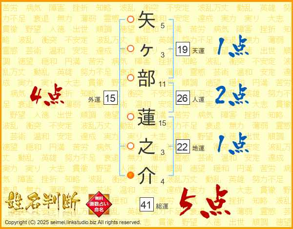 矢ヶ部蓮之介さんの総運は41画の5点!